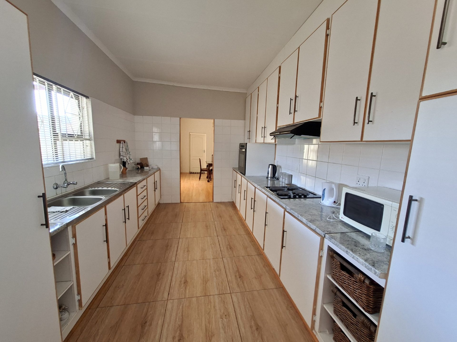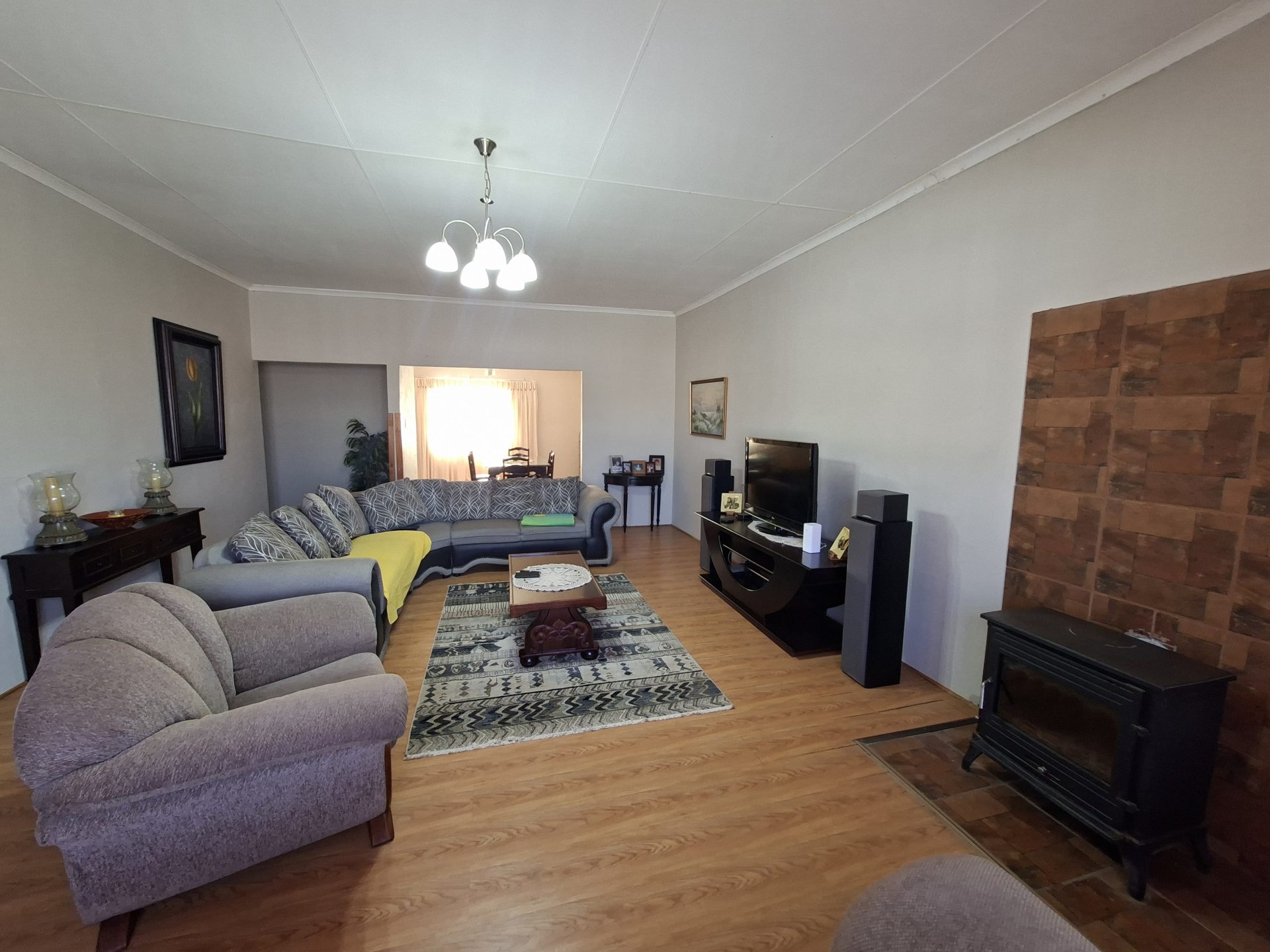 Enjoy the warmth and charm of the inviting lounge with a coal/wood stove, flowing into a separate dining room. The modern kitchen is fitted with an eye-level oven, hob with extractor fan and sleek built-in cupboards—ideal for effortless cooking and entertaining.